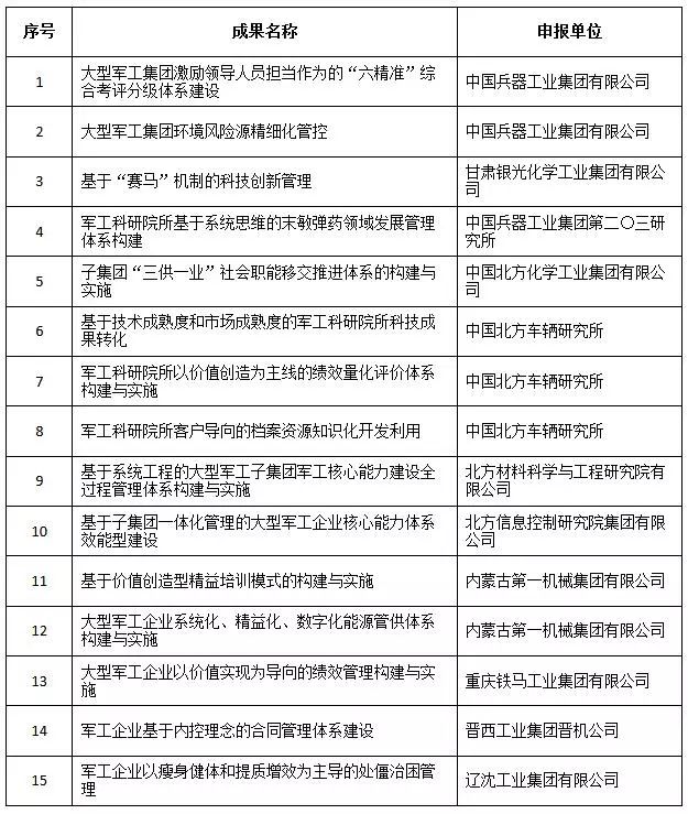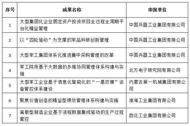 經(jīng)全國企業(yè)管理現(xiàn)代化創(chuàng)新成果審定委員會(huì)終審,第二十五屆全國企業(yè)管理現(xiàn)代化創(chuàng)新成果公布,中國兵器工業(yè)集團(tuán)4項(xiàng)創(chuàng)新成果榮獲二等獎(jiǎng)。