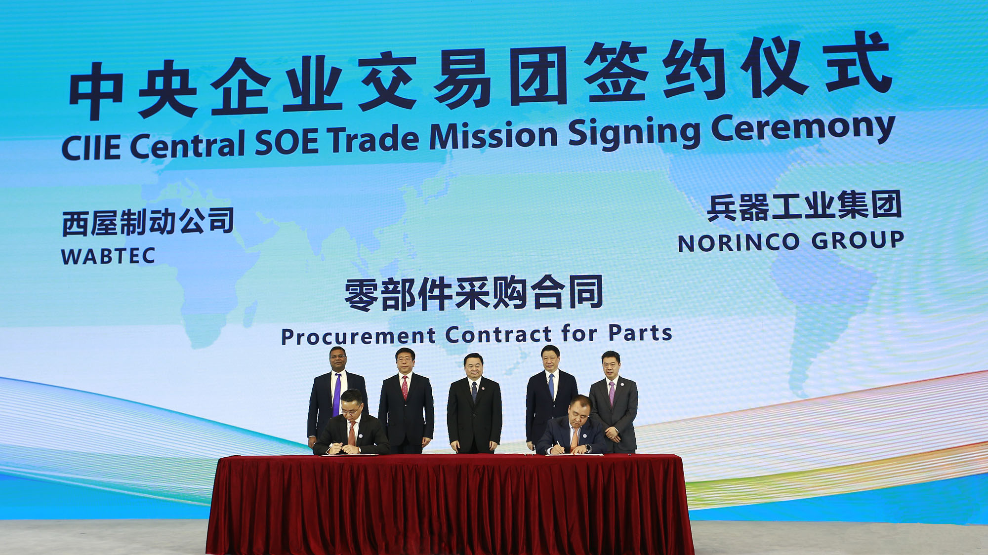 在11月6日上午舉行的中央企業交易團簽約儀式上,在國資委黨委書記、主任郝鵬,上海市委副書記、市長應勇,國資委副主任任洪斌,兵器工業集團副總經理鄒文超,簽約外方代表的見證下,兵器工業集團作為15戶央企代表之一,所屬北方重工業集團有限公司北方股份與西屋制動公司簽署電動輪礦用車電驅動系統采購和意向合同。 兩家企業合作共同為全球用戶提供解決方案,一方面打破了國外礦用卡車生產廠家在電動輪礦用卡車領域的壟斷,使得國內礦山終端用戶能夠用上國產高質量的礦用卡車,同時采購成本大幅降低。另一方面雙方利用對方品牌知名度的優勢,進一步鞏固在市場上的優勢地位。