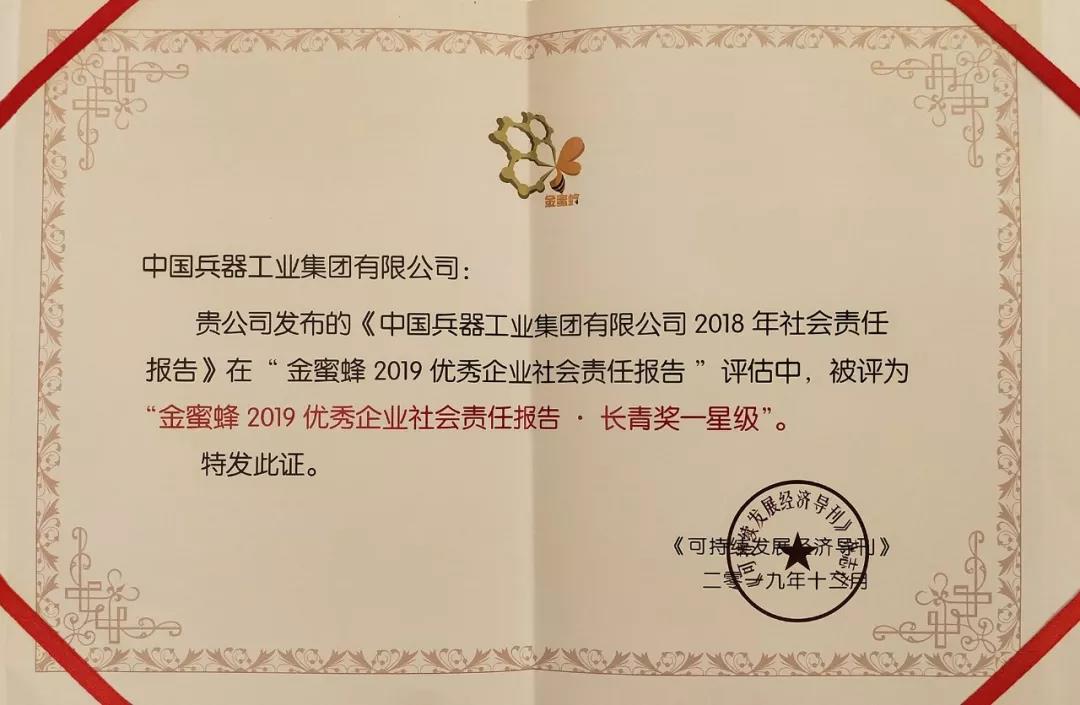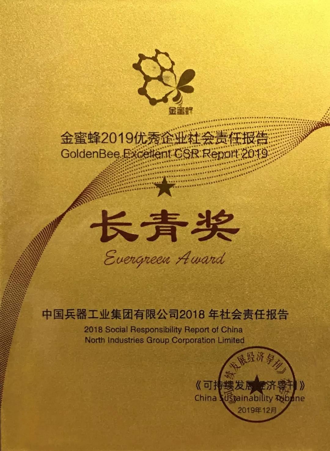 兵器工業集團社會責任報告再獲“金蜜蜂優秀企業社會責任報告·長青獎”