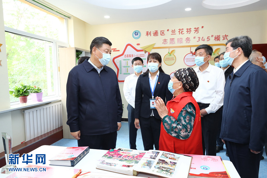 6月8日至10日,中共中央總書記、國家主席、中央軍委主席習近平在寧夏考察。這是6月8日下午,習近平在吳忠市利通區金花園社區考察民族團結社區創建工作情況。 新華社記者 謝環馳 攝