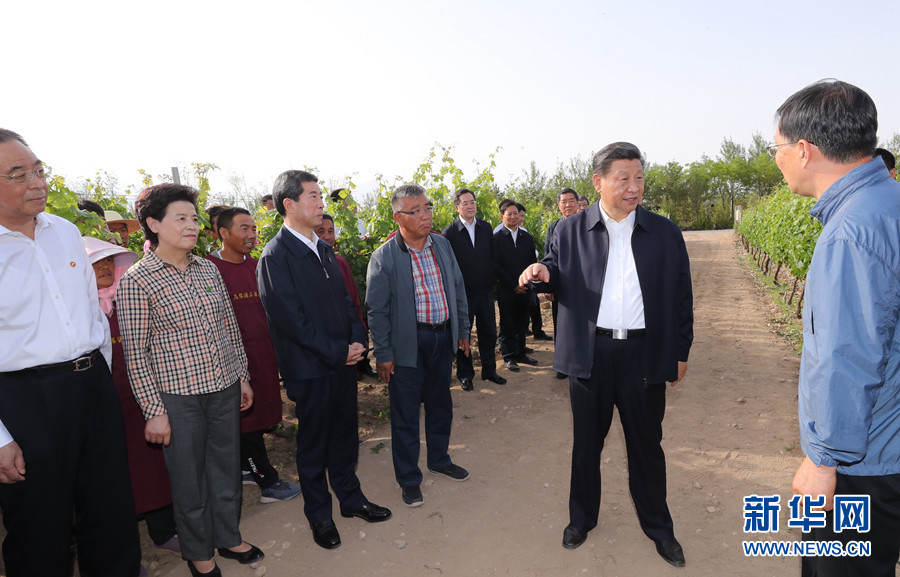 6月8日至10日,中共中央總書記、國家主席、中央軍委主席習近平在寧夏考察。這是6月9日下午,習近平在銀川市西夏區葡萄種植基地,同工人和技術人員交流。 新華社記者 鞠鵬 攝