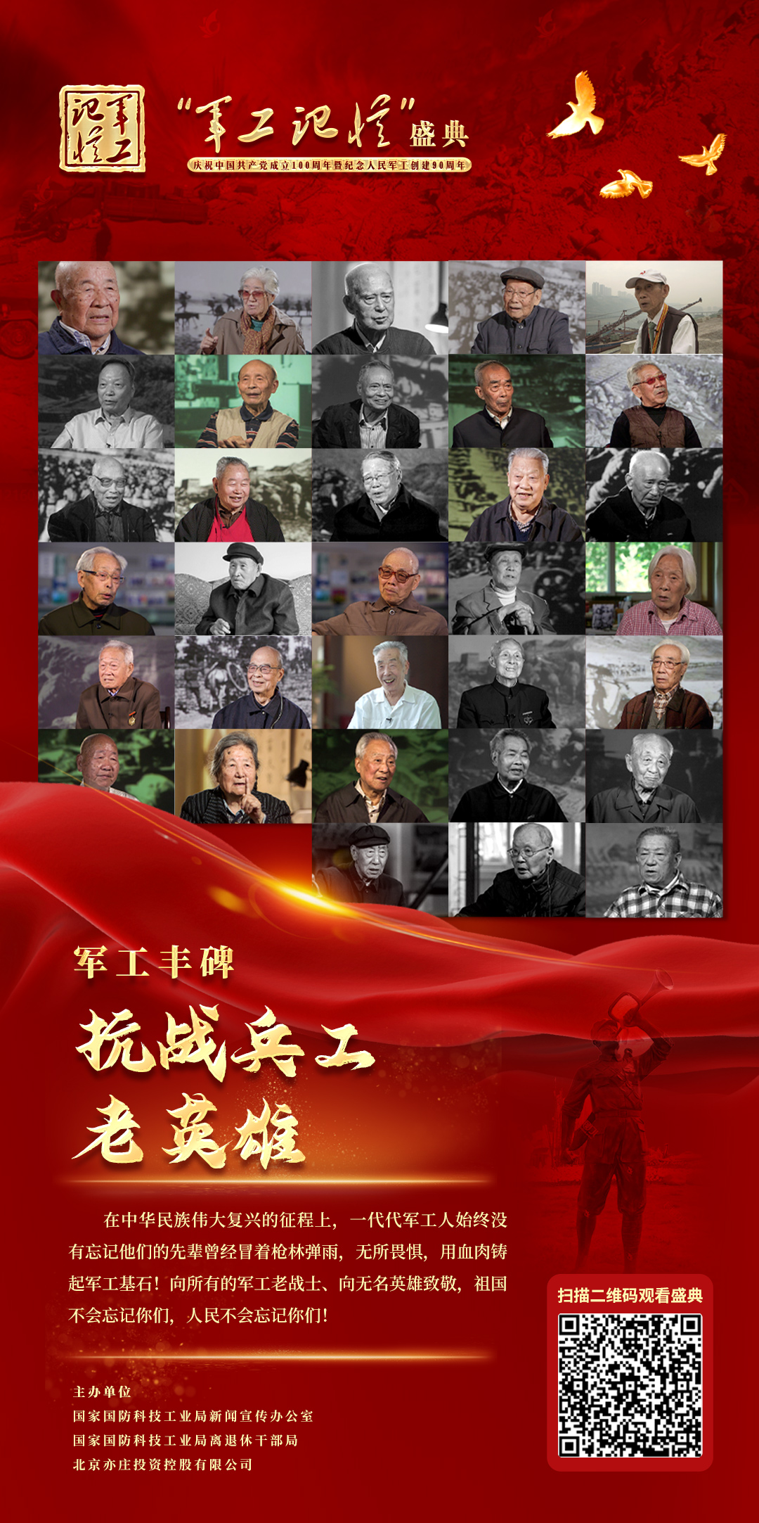 為慶祝中國共產黨成立100周年和紀念人民軍工事業創建90周年,國防科工局新聞宣傳辦公室、國防科工局離退休干部局、北京亦莊投資控股有限公司聯合主辦,各軍工集團公司和中物院協辦的“軍工記憶”特別節目,于7月31日正式在央視頻上線。
