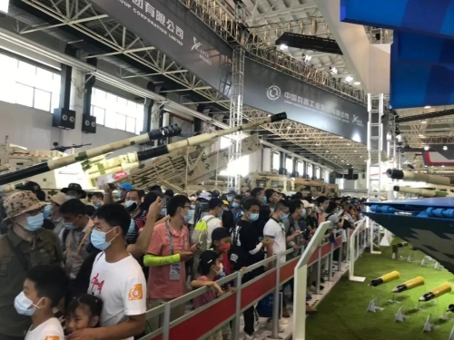 航展期間,備受關注的中國兵器館,參觀的觀眾絡繹不絕。