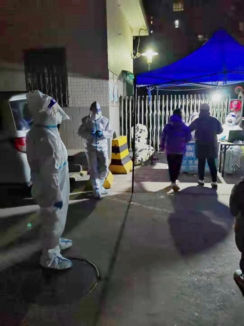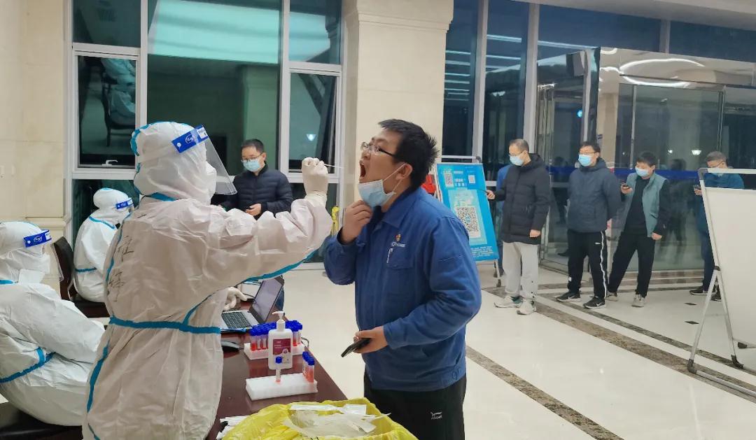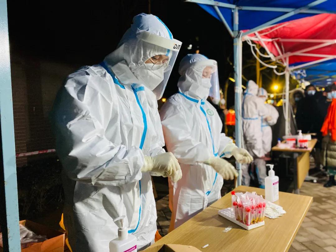 12月21日下午,置業集團521醫院核酸采樣隊100名醫務人員分赴長延堡街道、漳滸寨街道的30個社區進行核酸采集工作,從21日下午4點持續到22日凌晨7點,連續工作15小時,圓滿完成檢測任務。23日,醫務人員們再次踏上征程,展開核酸檢測,為全面贏得本次疫情防控阻擊戰貢獻力量。