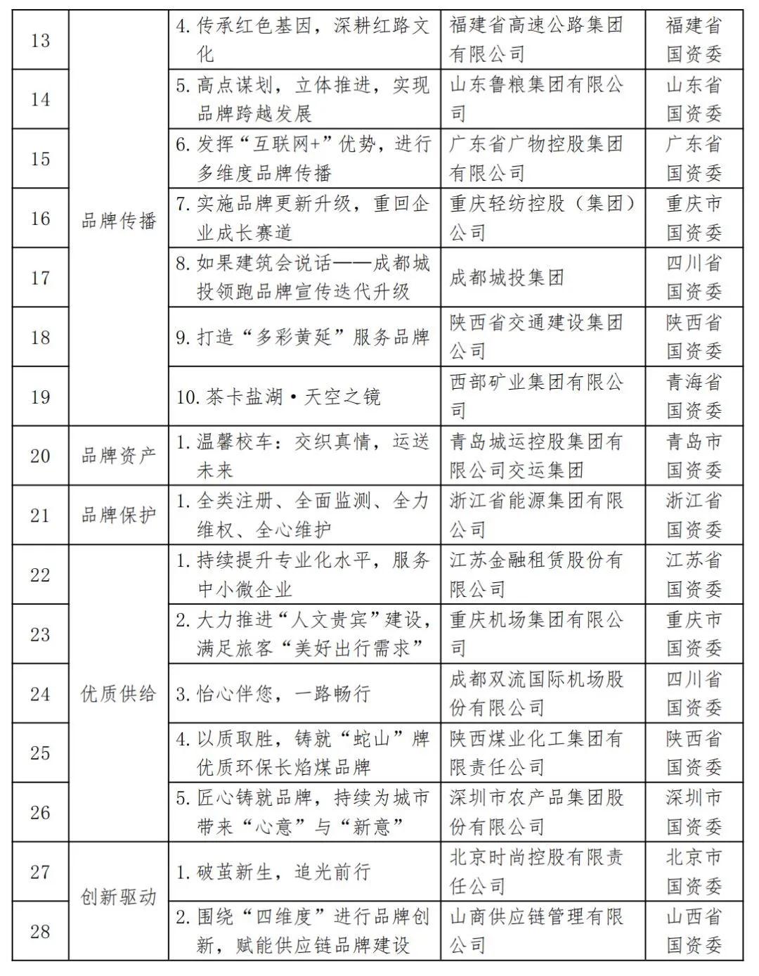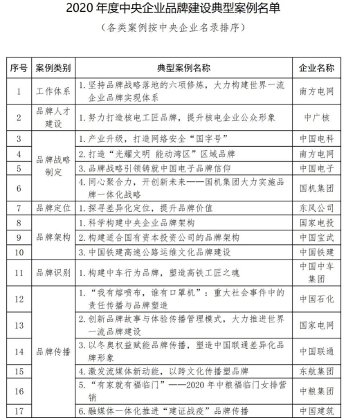 2020年度100個國有企業品牌建設典型案例和100個優秀品牌故事,匯集企業優秀經驗做法,豐富國企品牌資源池,促進企業相互學習借鑒,加快提高品牌管理專業化水平。