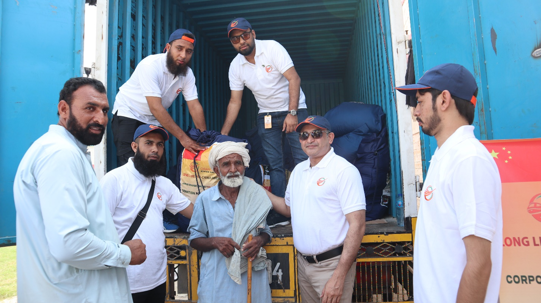 考慮到災(zāi)情期間交通不便,為了確保運(yùn)輸時(shí)效,項(xiàng)目組成立了由21人組成的運(yùn)輸保障志愿小分隊(duì)。9月6日,志愿小分隊(duì)連夜驅(qū)車400公里趕往災(zāi)區(qū),親手將救災(zāi)物品免費(fèi)發(fā)放到當(dāng)?shù)刎毨転?zāi)民眾手中,極大鼓舞了當(dāng)?shù)孛癖娍箵艉闉?zāi)的士氣。“無(wú)論遇到什么困難,中國(guó)總是第一個(gè)愿意幫助巴基斯坦的國(guó)家。感謝中國(guó)公司給予我們的支持與幫助,中巴友誼萬(wàn)歲!”當(dāng)?shù)鼐用窦娂姳硎靖兄x。