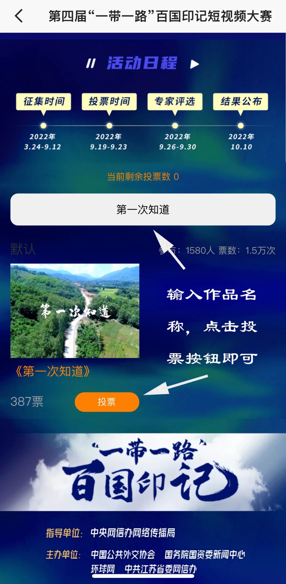 9月19日,由中央網(wǎng)信辦網(wǎng)絡(luò)傳播局指導(dǎo),中國公共外交協(xié)會、國務(wù)院國資委新聞中心、環(huán)球網(wǎng)和中共江蘇省委網(wǎng)信辦聯(lián)合主辦的第四屆“一帶一路”百國印記短視頻大賽完成作品征集,正式開啟投票階段。