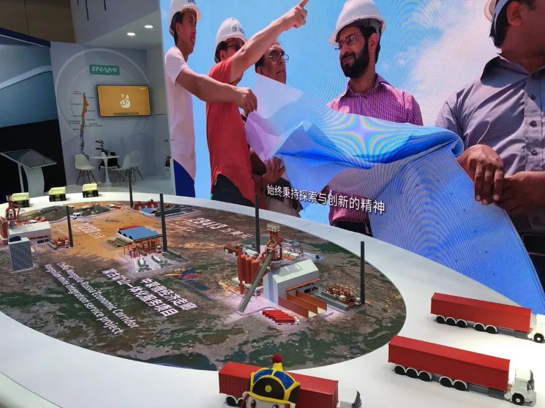 作為本次組團參展的重頭戲,兵器工業(yè)集團海外能源、資源開發(fā)、國際工程和產(chǎn)能合作等一系列“一帶一路”示范性項目、先進產(chǎn)品技術和ESG發(fā)展成果精彩亮相進博會現(xiàn)場。其中,振華石油控股有限公司攜手伊拉克石油銷售公司、伊拉克中部石油公司、德國菲馬機械制造公司,展出油氣勘探開發(fā)、貿易儲運、石油煉化等全產(chǎn)業(yè)鏈價值鏈體系及上中下游協(xié)同發(fā)展經(jīng)營模式;北方礦業(yè)有限責任公司邀請法國愛森集團、奧地利安德里茨集團參展,并展出海外項目生產(chǎn)實景以及智慧礦山建設相關技術和解決方案;北方國際合作股份有限公司協(xié)同克羅地亞ENERGIJA PROJEKT D.D能源項目股份公司及有關合作伙伴,展出克羅地亞塞尼風電項目與蒙古礦山一體化項目的開發(fā)建設歷程及生產(chǎn)運營現(xiàn)狀,講述推動“一帶一路”建設中傳統(tǒng)能源與綠色能源相向而行的發(fā)展故事。同時,來自“一帶一路”重點項目的多名外籍員工遠渡重洋來到展區(qū)現(xiàn)場,為與會中外嘉賓親身講述項目建設故事、技術創(chuàng)新故事、文化交融故事,為虹橋會展中心這片“四葉草”增添一道亮麗的風景線。