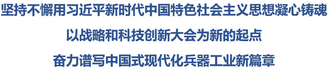 當前,集團公司正在深入開展主題教育,全系統各級黨員領導干部要按照“學思想、強黨性、重實踐、建新功”的總體要求,堅持不懈用習近平新時代中國特色社會主義思想凝心鑄魂,深刻領會習近平新時代中國特色社會主義思想的世界觀、方法論以及貫穿其中的立場觀點方法,特別是要把“六個必須堅持”的內涵要求學深悟透,將其轉化為指導實踐、推動工作的強大力量,轉化為貫徹落實戰略和科技創新大會精神的方法舉措,轉化為堅定履行強軍首責、推動高質量發展、加快建設具有全球競爭力的世界一流集團公司的政治自覺、思想自覺和行動自覺,凝心聚力促發展,馳而不息抓落實,立足崗位作貢獻,奮力譜寫中國式現代化兵器工業新篇章!