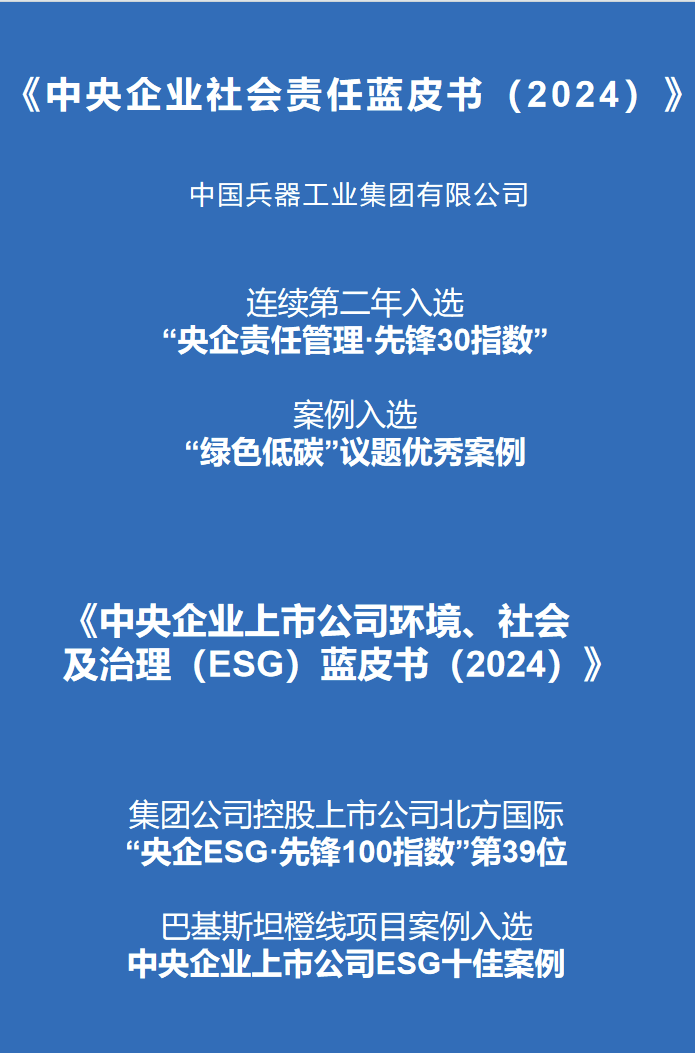 國(guó)有企業(yè)社會(huì)責(zé)任平行論壇現(xiàn)場(chǎng)發(fā)布了《中央企業(yè)社會(huì)責(zé)任藍(lán)皮書(shū)(2024)》《中央企業(yè)海外環(huán)境、社會(huì)及治理(ESG)藍(lán)皮書(shū)(2024)》《中央企業(yè)上市公司環(huán)境、社會(huì)及治理(ESG)藍(lán)皮書(shū)(2024)》等系列成果。其中,集團(tuán)公司連續(xù)第二年入選“央企責(zé)任管理·先鋒30指數(shù)”榜單,集團(tuán)公司案例入選“綠色低碳”議題優(yōu)秀案例,所屬控股上市公司北方國(guó)際入選“央企ESG·先鋒100指數(shù)”第39位,巴基斯坦橙線(xiàn)項(xiàng)目案例入選中央企業(yè)上市公司ESG十佳案例