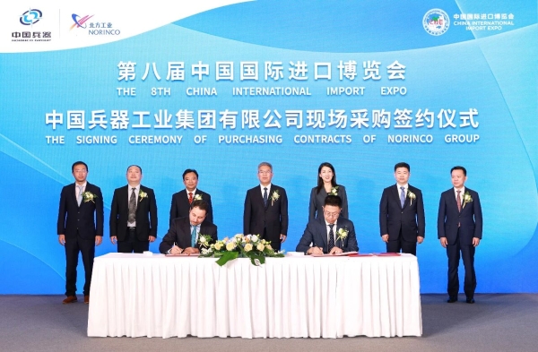 本次專場采購簽約儀式圍繞“戰略資源、工業原材料、精密裝備”三大板塊展開,中國北方工業有限公司所屬振華石油、北方礦業、北方國際,以及中國兵工物資集團有限公司、華錦阿美石油化工有限公司、內蒙古北方重型汽車股份有限公司等企業分別與來自13個國家的16家企業開展主題采購簽約。本次進博會期間,兵器工業集團累計簽約進口采購合同總金額達386億元人民幣,再創歷屆進博會新高。